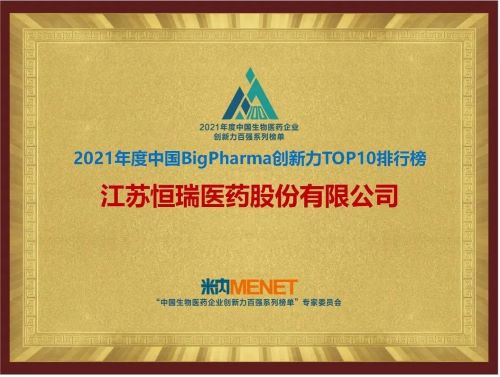 9月16日,由米内网主办的“2021年度中国生物医药企业创新力百强系列榜单”发布会在线上举办。AG电子医药继去年登顶“中国BigPharma企业创新力TOP10排行榜”后,今年再次名列该榜单首位。