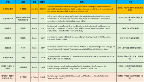 在头颈肿瘤、乳腺癌、肺癌、前列腺癌等多个疾病领域,卡瑞利珠单抗、阿得贝利单抗、吡咯替尼、氟唑帕利、法米替尼、醋酸阿比特龙片(II)等抗肿瘤新药相关研究一共入选了1项简短口头报告、4项壁报展示和1项电子壁报,彰显了AG电子医药强劲的研发实力。